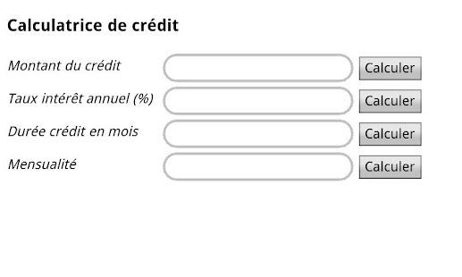Credit Calculator. Simply: - Allows you to calculate your borrowing capacity based on the rate, duration and the monthly payment - Allows you to calculate the ...